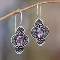 Balinese Amethyst and Sterling Silver Dangle Earrings 'Purple Water Hyacinth' Item ID: 2671702526