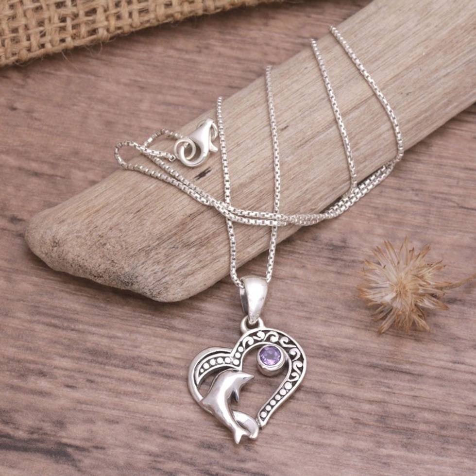 Balinese Amethyst Sterling Silver Dolphin Pendant Necklace 'Lovina Vibes in Purple' Item ID: 2671747905