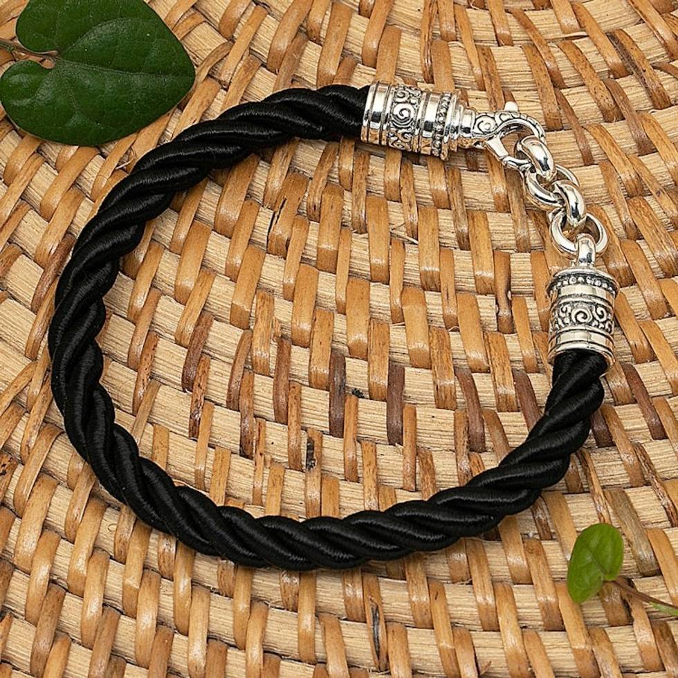 Balinese Artisan-Made Black Sterling Silver Pendant Bracelet 'Hero of Islands' Item ID: 2671765799