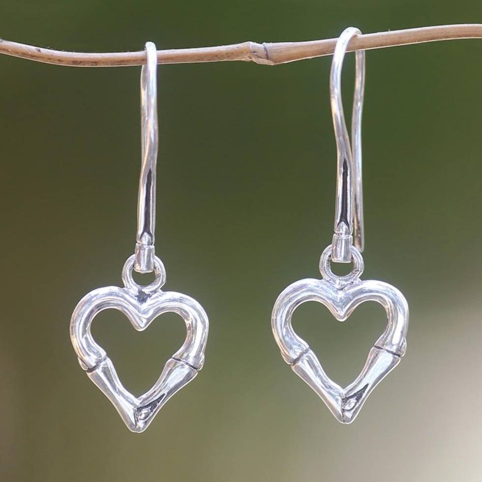 Balinese Bamboo Motif Sterling Silver Heart Earrings 'Bamboo Heart' Item ID: 2671701481