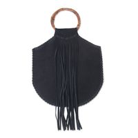Balinese Black Suede and Bamboo Handle Handbag with Fringe 'Endeavor in Onyx' Item ID: 2671736873