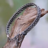 Balinese Braided Sterling Silver Bracelet with Toggle Clasp 'Tukad Pakerisan' Item ID: 2671701775