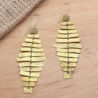 Balinese Brass Dangle Earrings on Stainless Steel Hooks 'Horizontal Bars in Yellow' Item ID: 2671745405