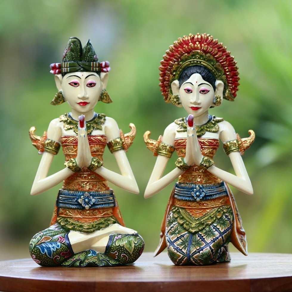Balinese Bride and Groom Handcrafted Wood Sculptures Pair 'Balinese Bride and Groom' Item ID: 2669889381