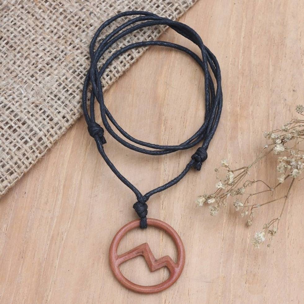 Balinese Cotton Cord and Wood Pendant Necklace 'Waves of Kuta' Item ID: 2671748624