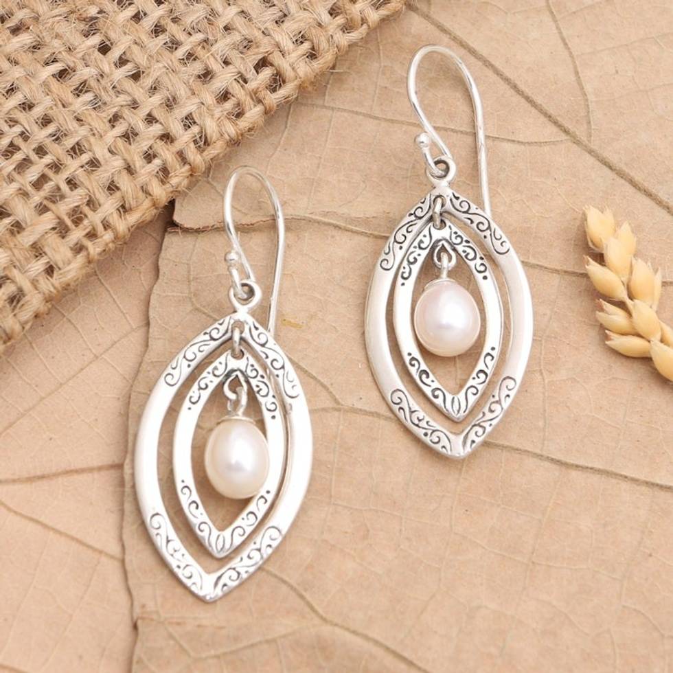Balinese Cultured Pearl and Sterling Silver Dangle Earrings 'Rare Entity' Item ID: 2671748199