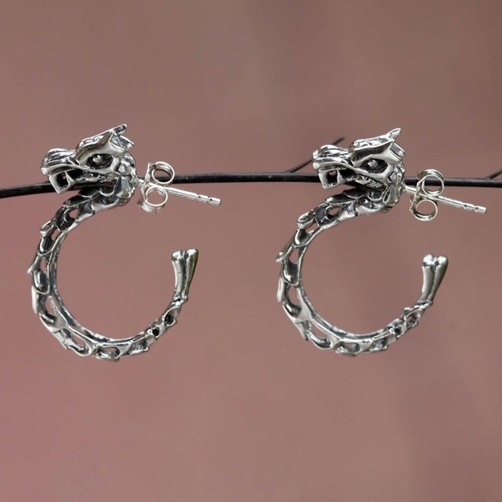 Balinese Dragon Half-hoop Earrings 'Anantaboga Dragon' Item ID: 2669921881