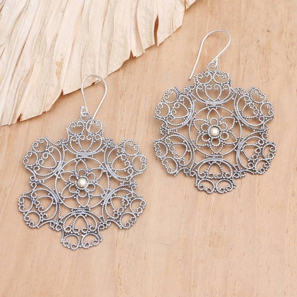Balinese Filigree Earrings with 18k Gold Accents 'Blooming Batur' Item ID: 2671747747