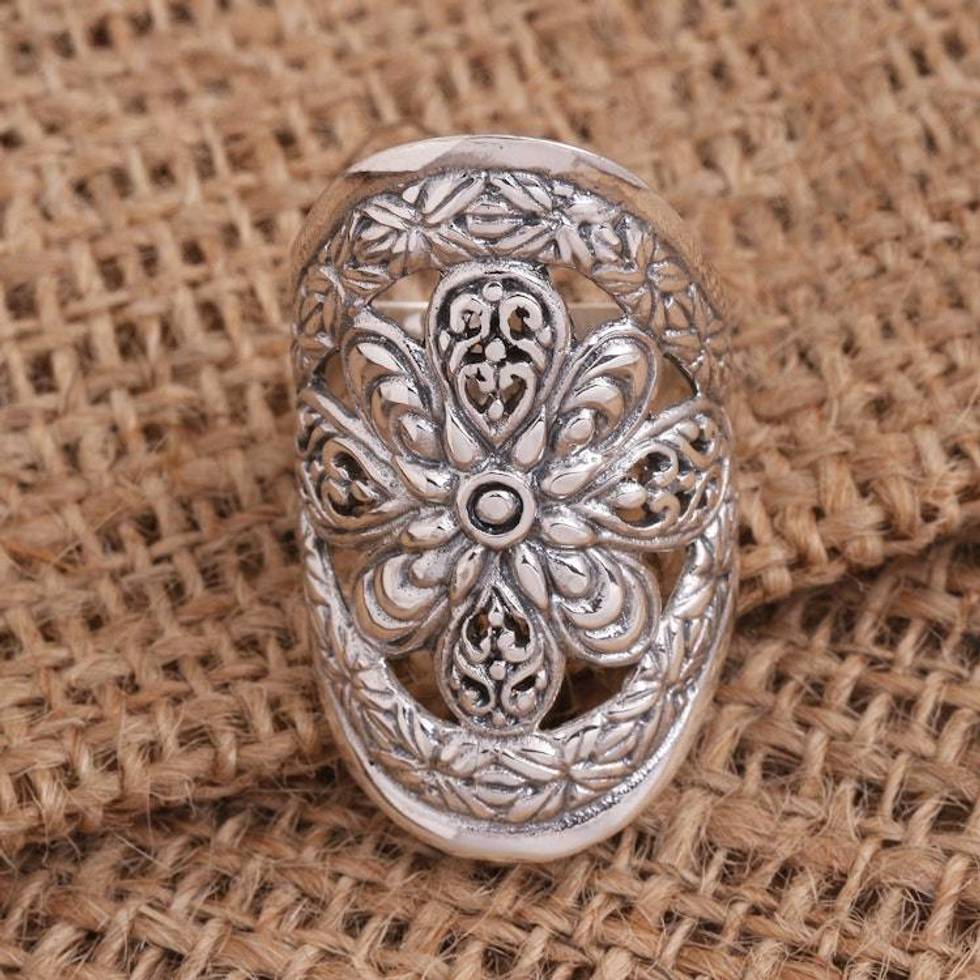 Balinese Flower Sterling Silver Cocktail Ring 'Fantasia' Item ID: 2676667074