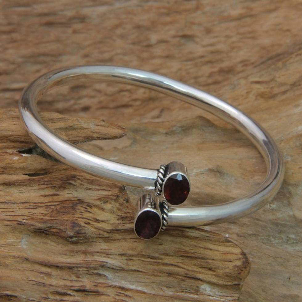 Balinese Garnet and Sterling Silver Bangle Bracelet 'Bound To You' Item ID: 2671475158