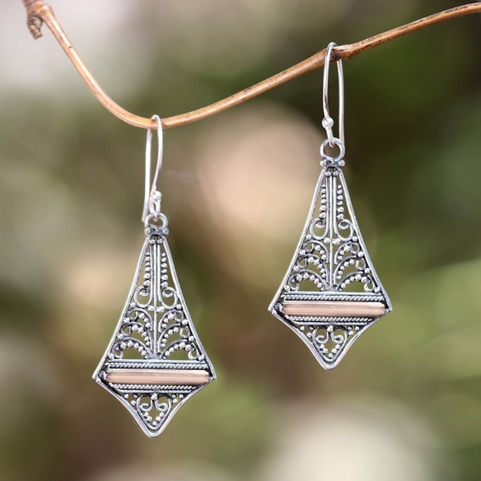 Balinese Gold Accented Sterling Silver Dangle Earrings 'Kuta Kite' Item ID: 2671473253