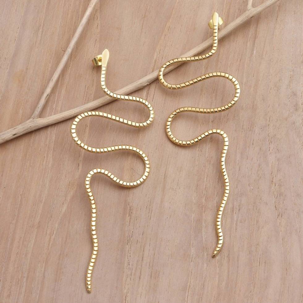 Balinese Gold-Plated Drop Earrings with Snake Motif 'Cobra Queen' Item ID: 2671748658