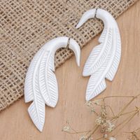 Balinese Hand-Carved Drop Earrings with Leafy Design 'Leafy Luminosity' Item ID: 2671747896