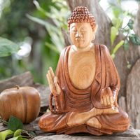 Balinese Hand-Carved Suar Wood Sculpture of Master Buddha 'Peace of Buddha' Item ID: 2669910056