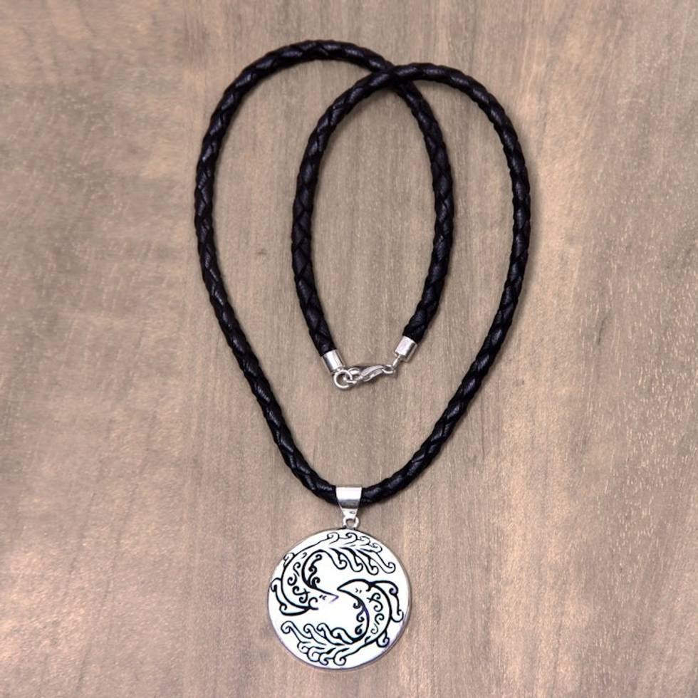 Balinese Hand Crafted Pisces Zodiac Leather Pendant Necklace 'Pisces' Item ID: 2671702590