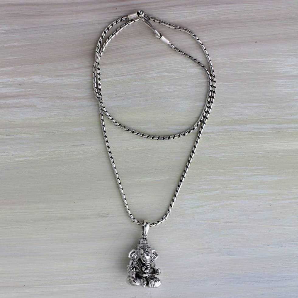 Balinese Hand Crafted Sterling Silver Hindu Pendant Necklace 'Lord Ganesha' Item ID: 2671701614