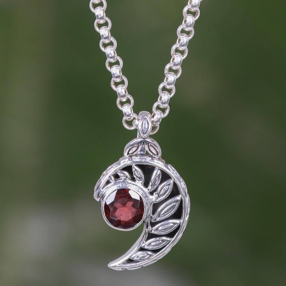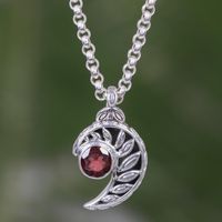 Balinese Handcrafted Silver Fern Theme Garnet Necklace 'Silver Fern Embrace' Item ID: 2671702848