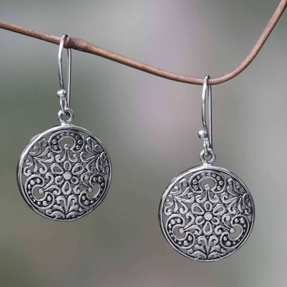 Balinese Handcrafted Sterling Silver Hook Earrings 'Sacred Moon' Item ID: 2671702379