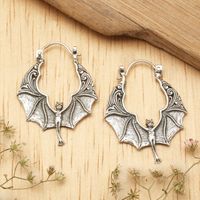 Balinese Handmade Bat-Shaped Sterling Silver Hoop Earrings 'Nocturnal Puissance' Item ID: 2671669752