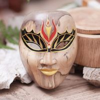 Balinese Hibiscus Wood Mask with Hand-Painted Vibrant Motifs 'The Emperor' Item ID: 2671748636