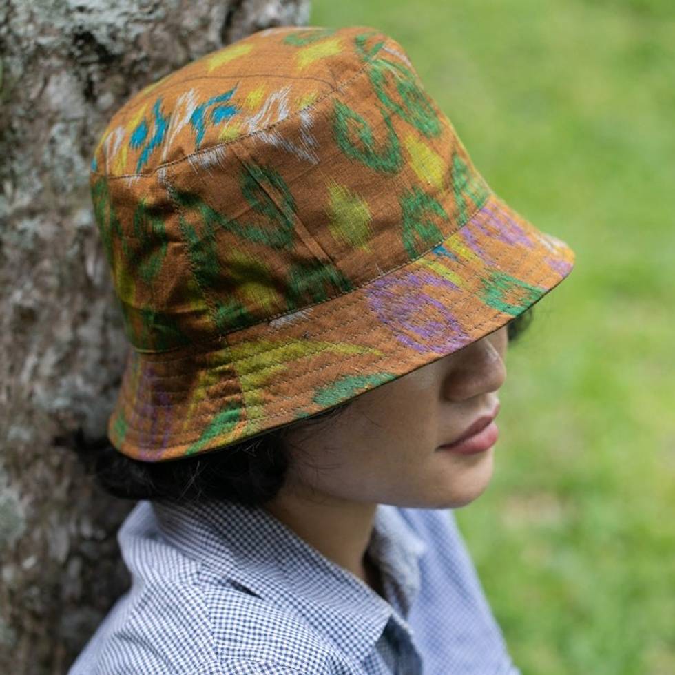 Balinese Ikat-Themed 100 Cotton Bucket Hat in Sepia Hues 'Sepia Denpasar' Item ID: 2671655714