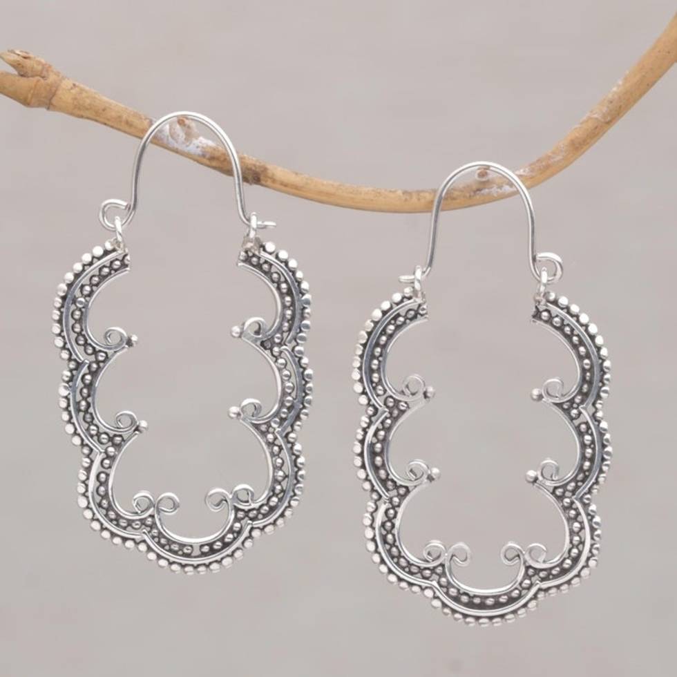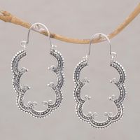 Balinese Leaf Motif Sterling Silver Hoop Earrings 'Breadfruit Leaves' Item ID: 2671475996