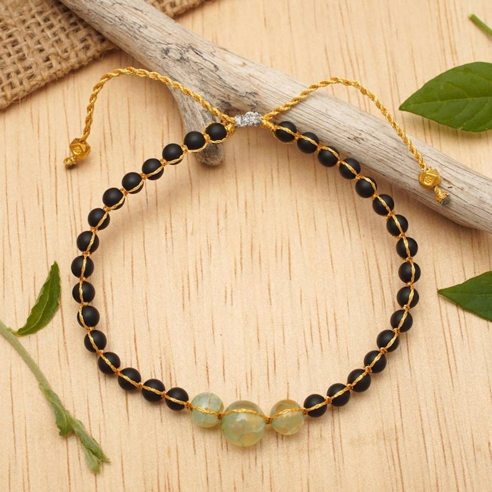 Balinese-Made Adjustable Onyx and Aquamarine Beaded Bracelet 'Hope in Darkness' Item ID: 2671765809