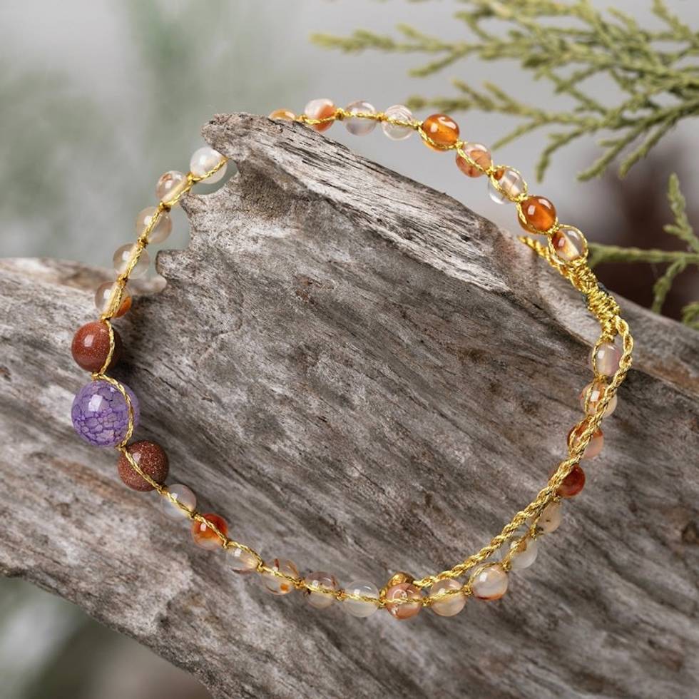 Balinese-Made Golden Chalcedony and Amethyst Beaded Bracelet 'Wise Healing' Item ID: 2671768765