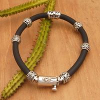 Balinese Men's Cord Bracelet with Sterling Silver Beads 'Noble and Strong' Item ID: 2671764202