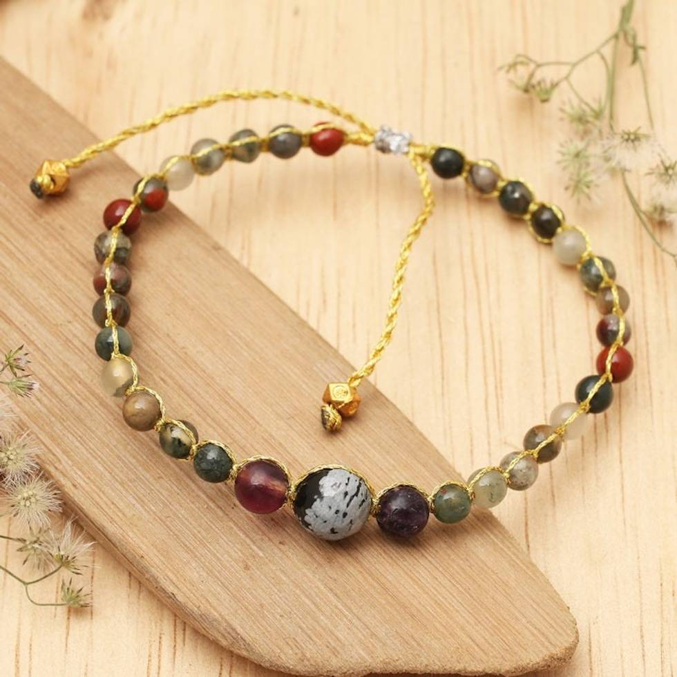 Balinese Multi-Gemstone Beaded Bracelet with Golden Beads 'Brave Life' Item ID: 2671655718