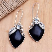 Balinese Onyx and Blue Topaz Dangle Earrings 'Midnight Ice' Item ID: 2671747277