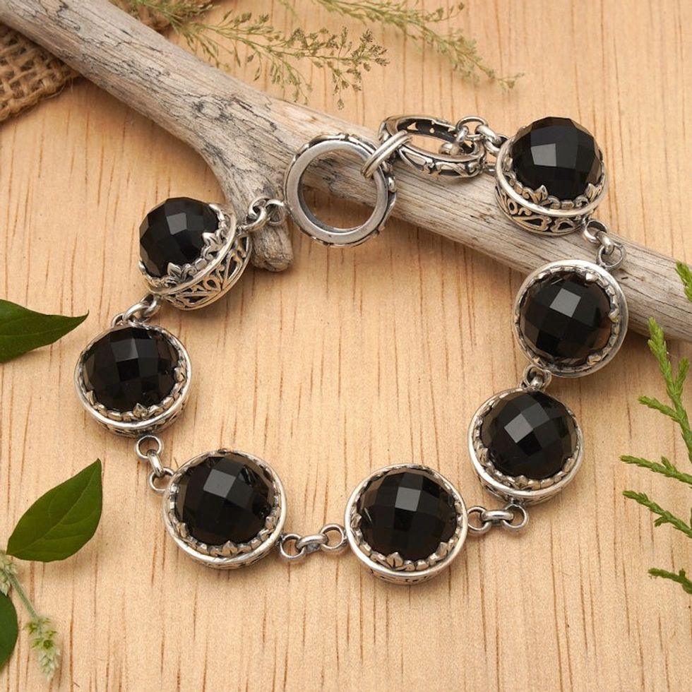Balinese Onyx and Sterling Silver Link Bracelet 'Midnight Queen' Item ID: 2671474909
