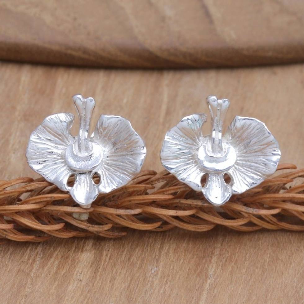Balinese Orchid Sterling Silver Fashion Stud Earrings 'Simply Orchids' Item ID: 2671748164