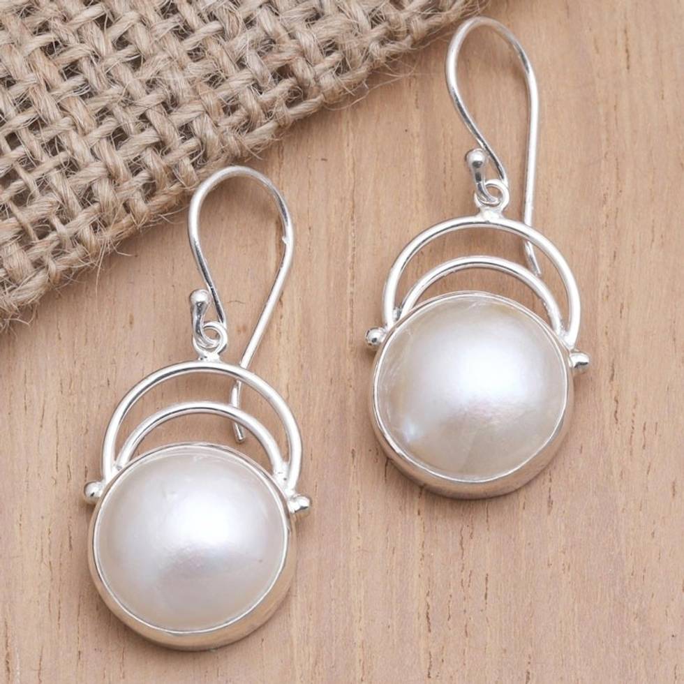 Balinese Pearl and Sterling Silver Dangle Earrings 'Ocean Undertow' Item ID: 2671556977
