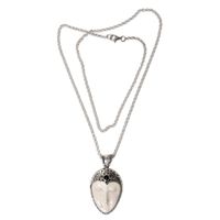 Balinese Pendant Necklace of Carved Bone, Garnet and Silver 'Lady Warrior' Item ID: 2669923398