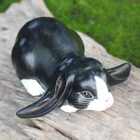 Balinese Signed Black White Lop-Eared Rabbit Sculpture 'Lop-Eared Dutch Bunny' Item ID: 2671737529