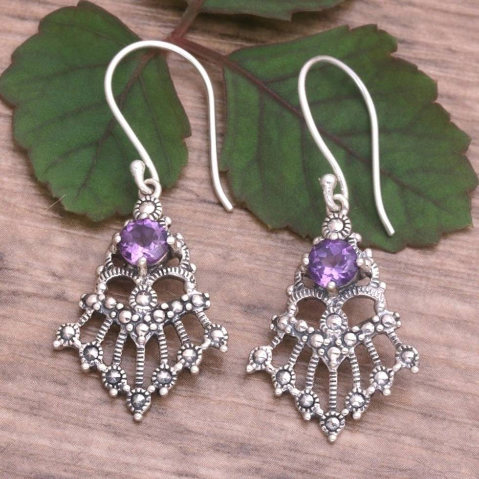 Balinese Sterling Silver and Amethyst Dangle Earrings 'Purple Kwangen' Item ID: 2671748380