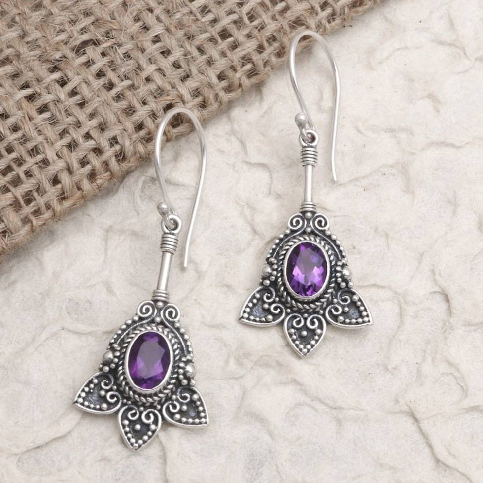 Balinese Sterling Silver and Amethyst Dangle Earrings 'Visionary Soul' Item ID: 2671747912