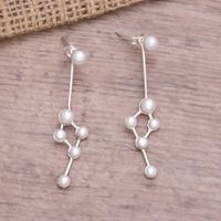 Balinese Sterling Silver and Cultured Pearl Dangle Earrings 'Geometric Journey' Item ID: 2671747791
