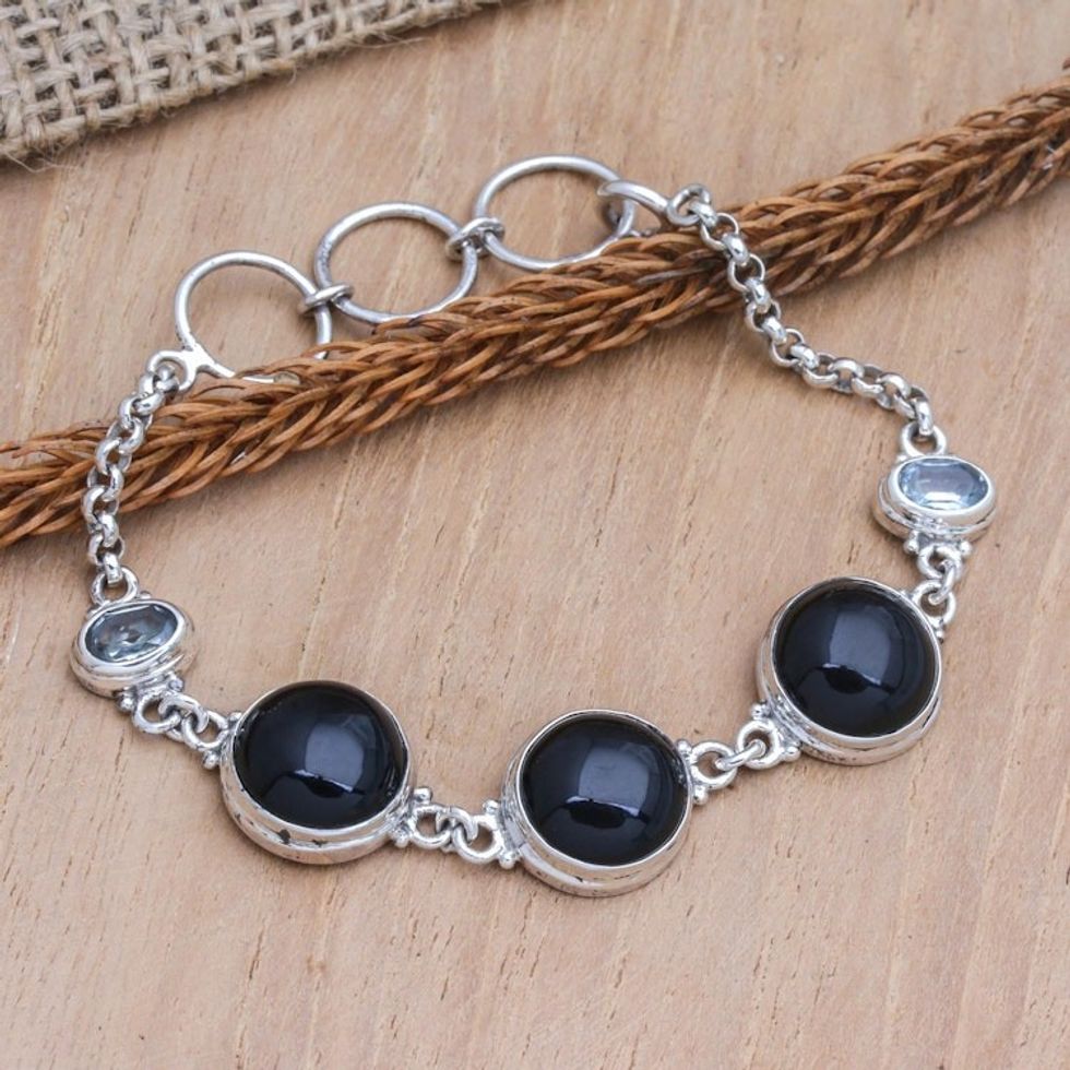 Balinese Sterling Silver Blue Topaz Horn Pendant Bracelet 'Spooky Black' Item ID: 2671747790