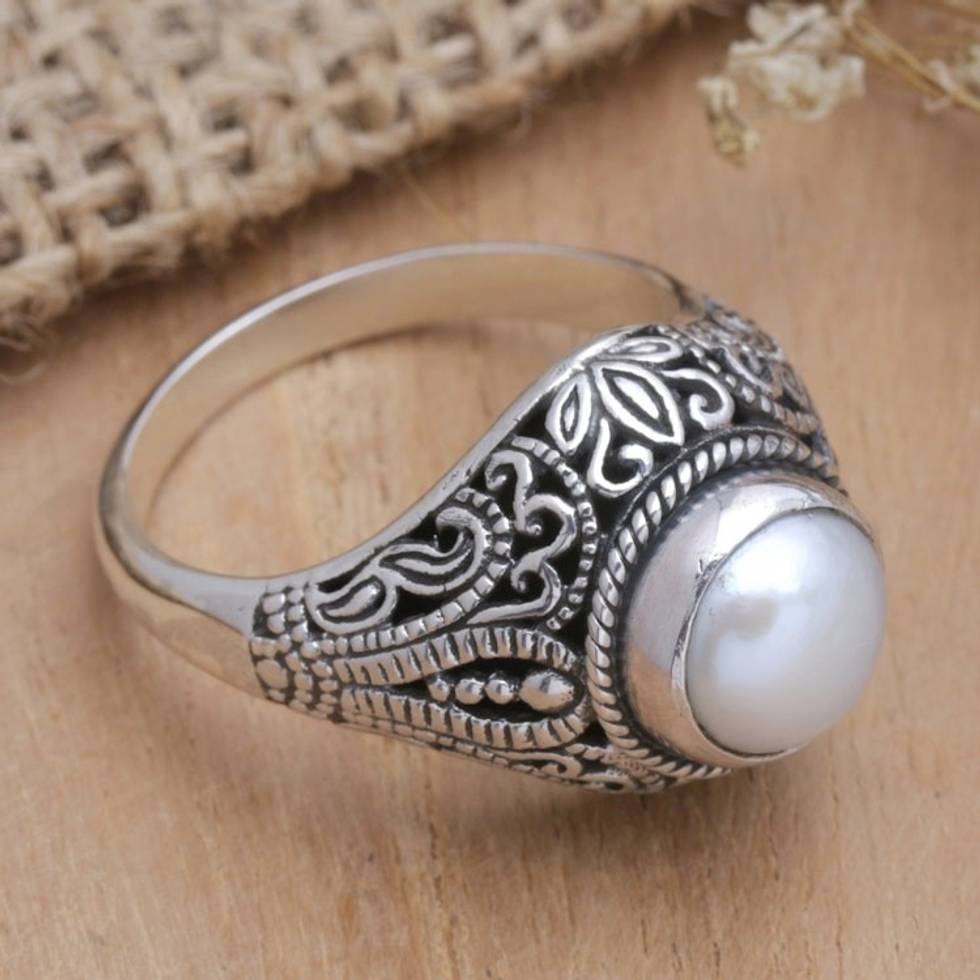 Balinese Sterling Silver Cocktail Ring with Grey Pearl 'Pearly Charm' Item ID: 2671747801