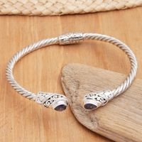 Balinese Sterling Silver Cuff Bracelet with Amethyst Gems 'Spiritual Fates' Item ID: 2671764385