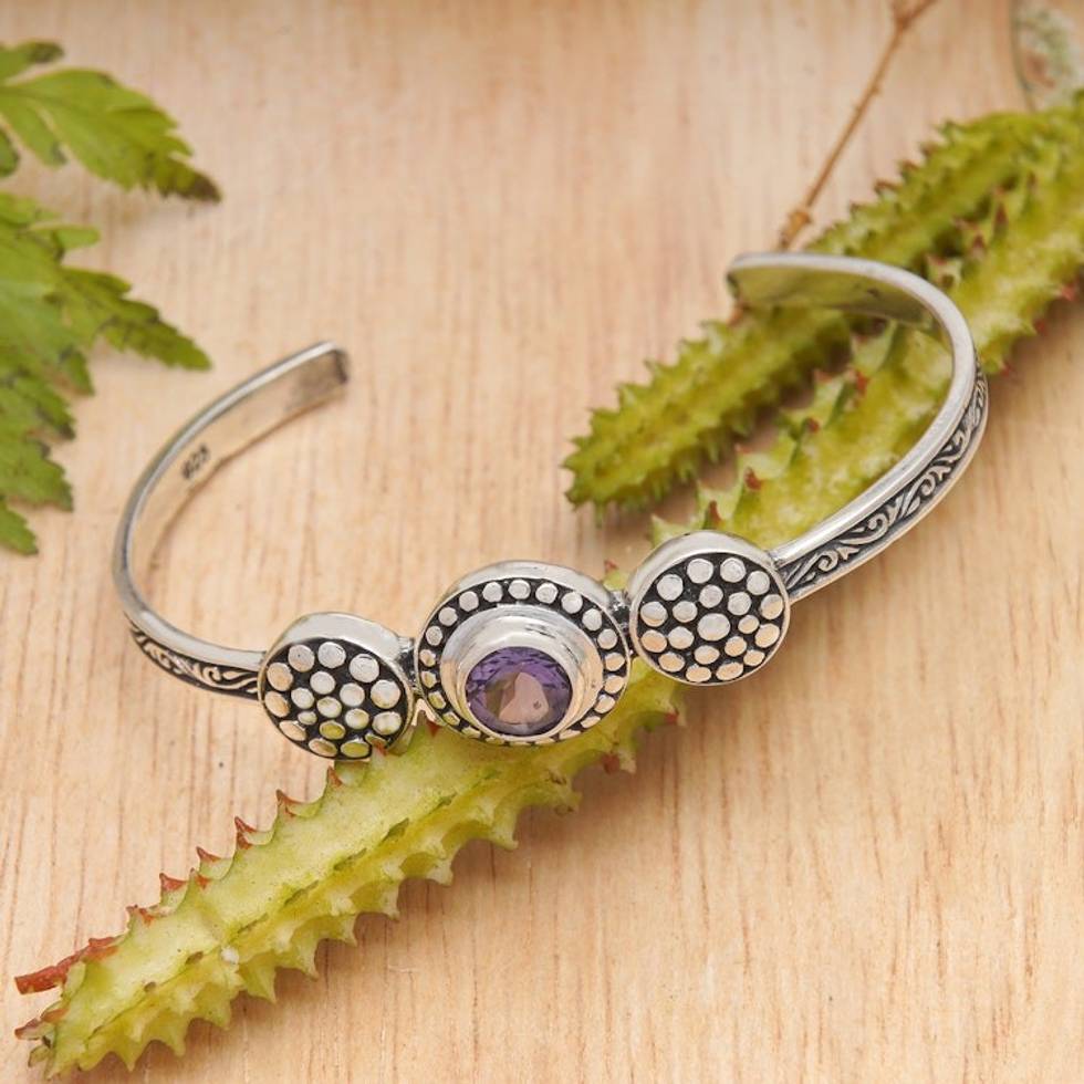 Balinese Sterling Silver Cuff Bracelet with Faceted Amethyst 'Eternal Wisdom' Item ID: 2671613467
