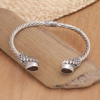 Balinese Sterling Silver Cuff Bracelet with Garnet Stones 'Stylish Red Feathers' Item ID: 2671748611