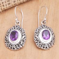 Balinese Sterling Silver Dangle Earrings with Amethyst Gems 'Purple Medallion of Bali' Item ID: 2671748049