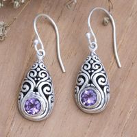 Balinese Sterling Silver Dangle Earrings with Amethyst Gems 'Tears of Wisdom' Item ID: 2671763003