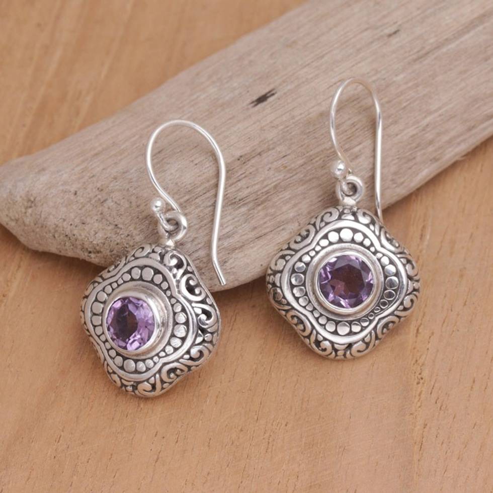 Balinese Sterling Silver Dangle Earrings with Amethysts 'Purple Lovely Touch' Item ID: 2671748508