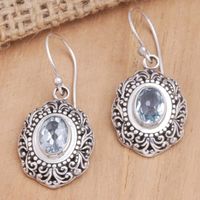 Balinese Sterling Silver Dangle Earrings with Blue Topaz 'Blue Medallion of Bali' Item ID: 2671748605