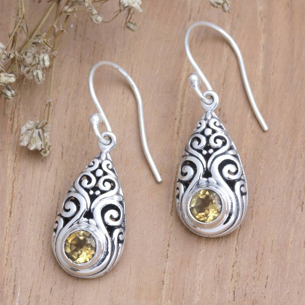Balinese Sterling Silver Dangle Earrings with Citrine Stones 'Tears of Jubilation' Item ID: 2669922068