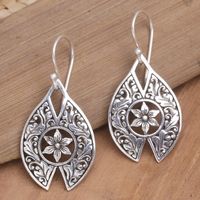Balinese Sterling Silver Dangle Earrings with Floral Motif 'Charming Shields' Item ID: 2671748360